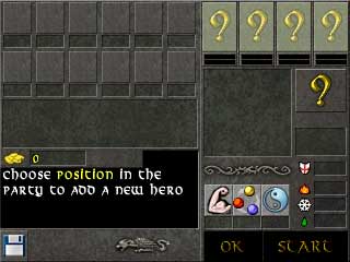 1) Select hero's position in the party (click one of the four glowing question marks).