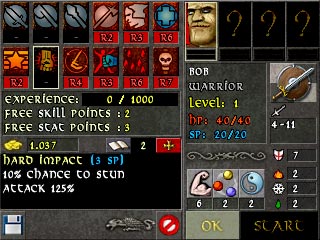 Every hero has a name you give him/her and an occupation you choose. Occupation influences starting statistics of the hero and set of skill, this hero can learn.